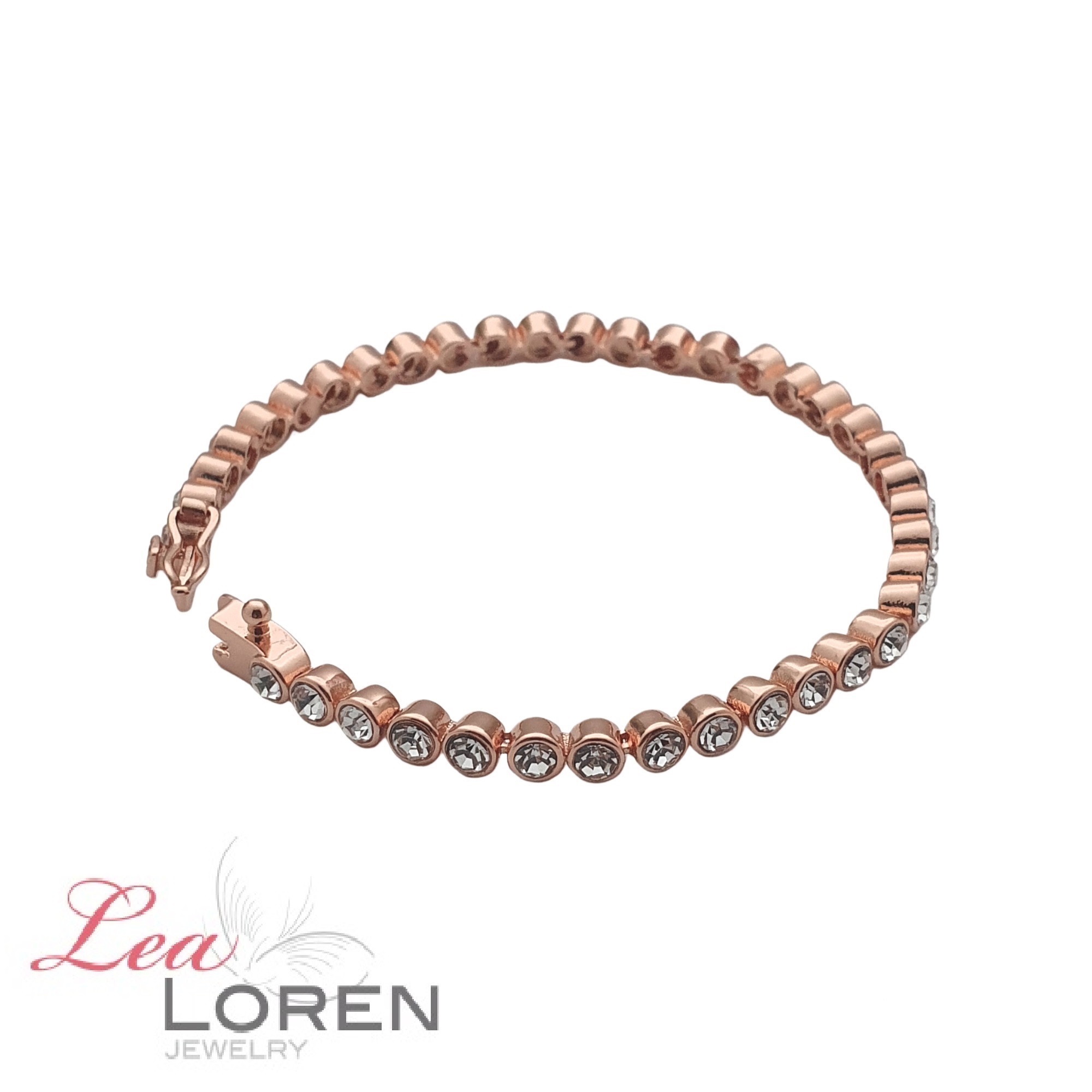Classic rosegold tennis bracelet lined with clear cubic zirconia stones. It is a statement in eyery way for every woman.